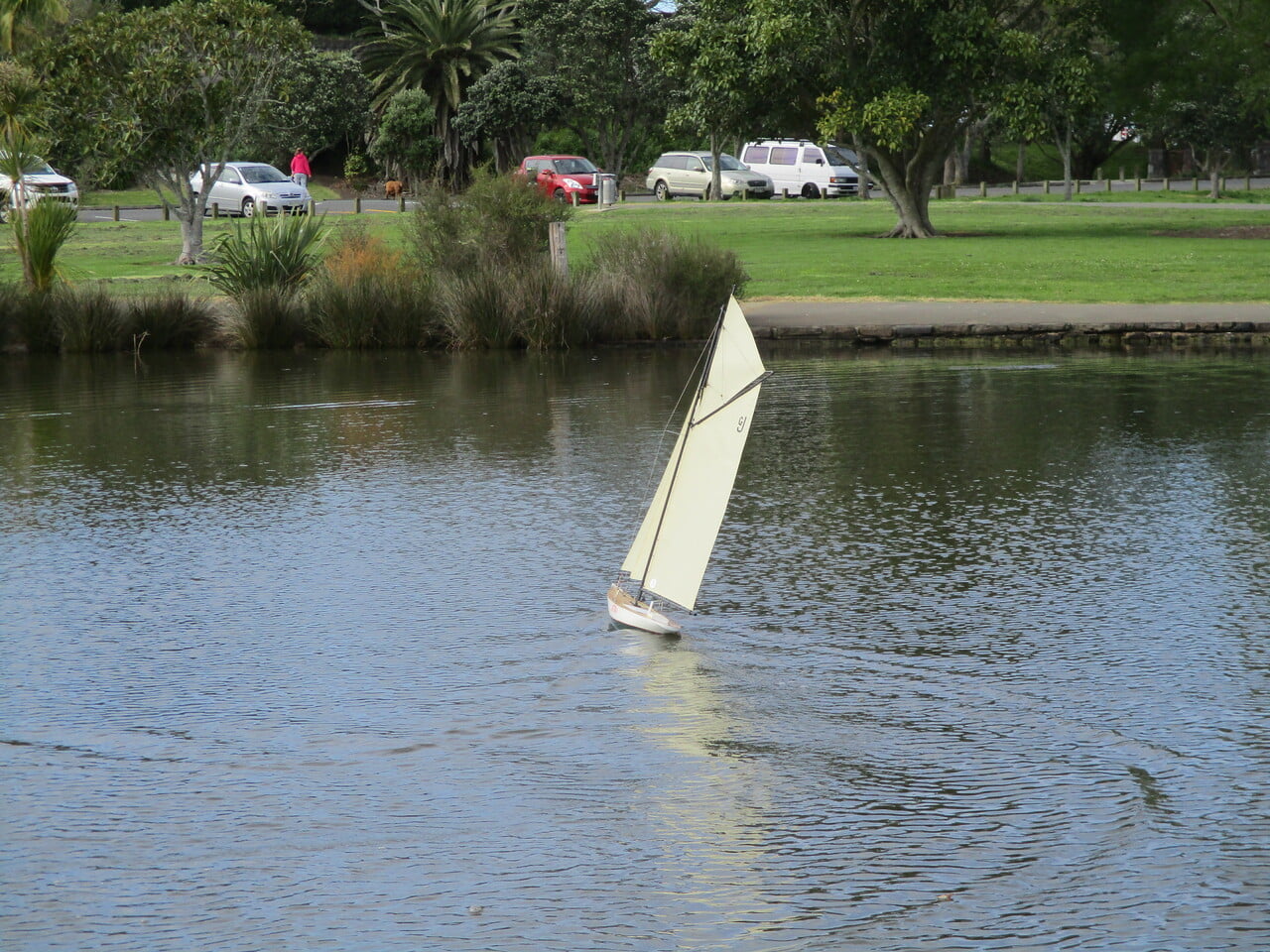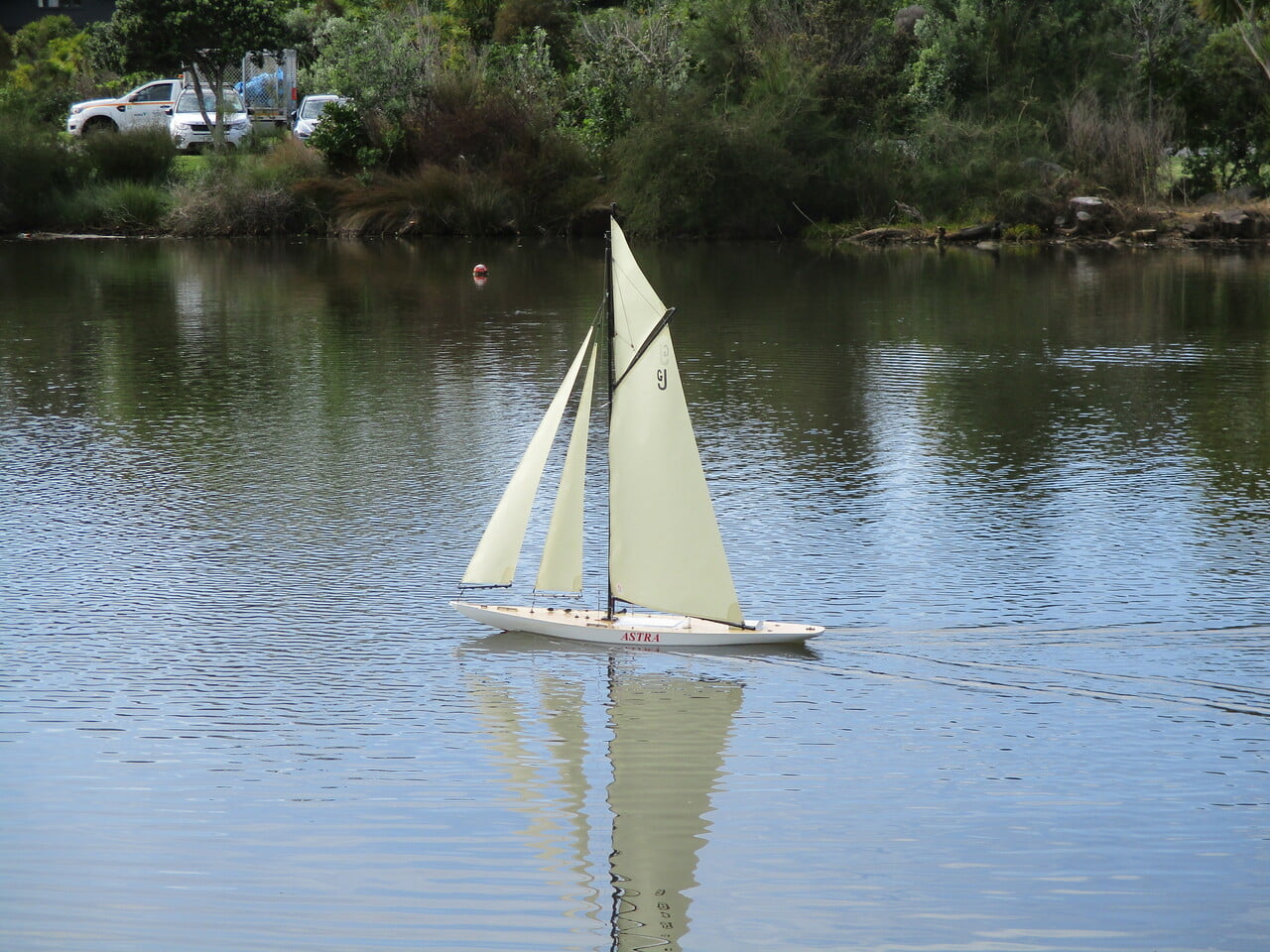 The sails are Dacron and the rig design is from Alan Horne in Nottingham.Note on the sail as GJ. That was the only day that I have been sailing since before L4 lockdown. Just keeping well and isolated. It has meant that a wooden IOM I have building for months is now ready to measure- after I swap the sails for ones with the boat number.